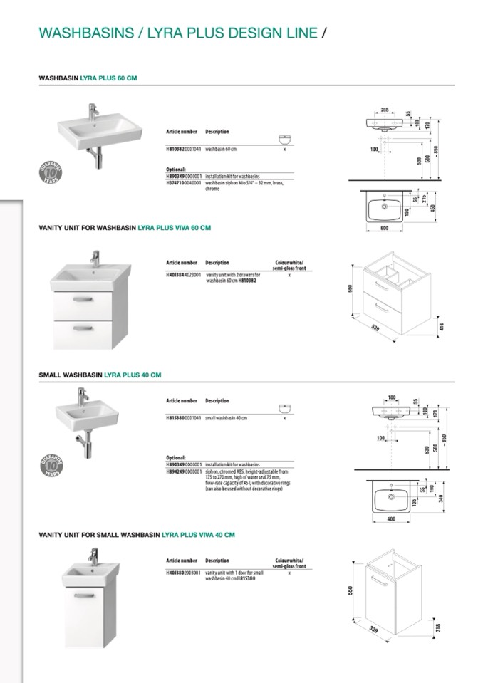 SMALL WASHBASIN LYRA PLUS 40 CM