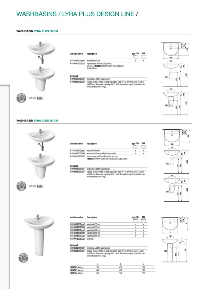 H8900130000001) only for washbasins 55, 60, 65 cm