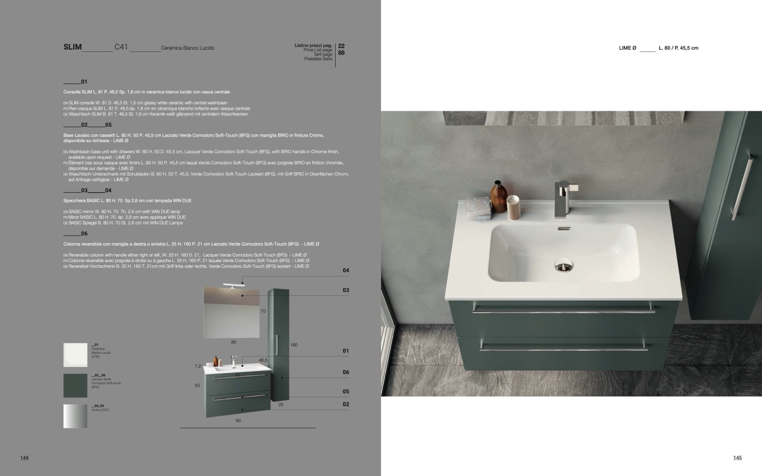 à droite ou à gauche L. 25 H. 160 P. 21 laquée Verde Comodoro Soft-Touch (8FG) - LIME Ø