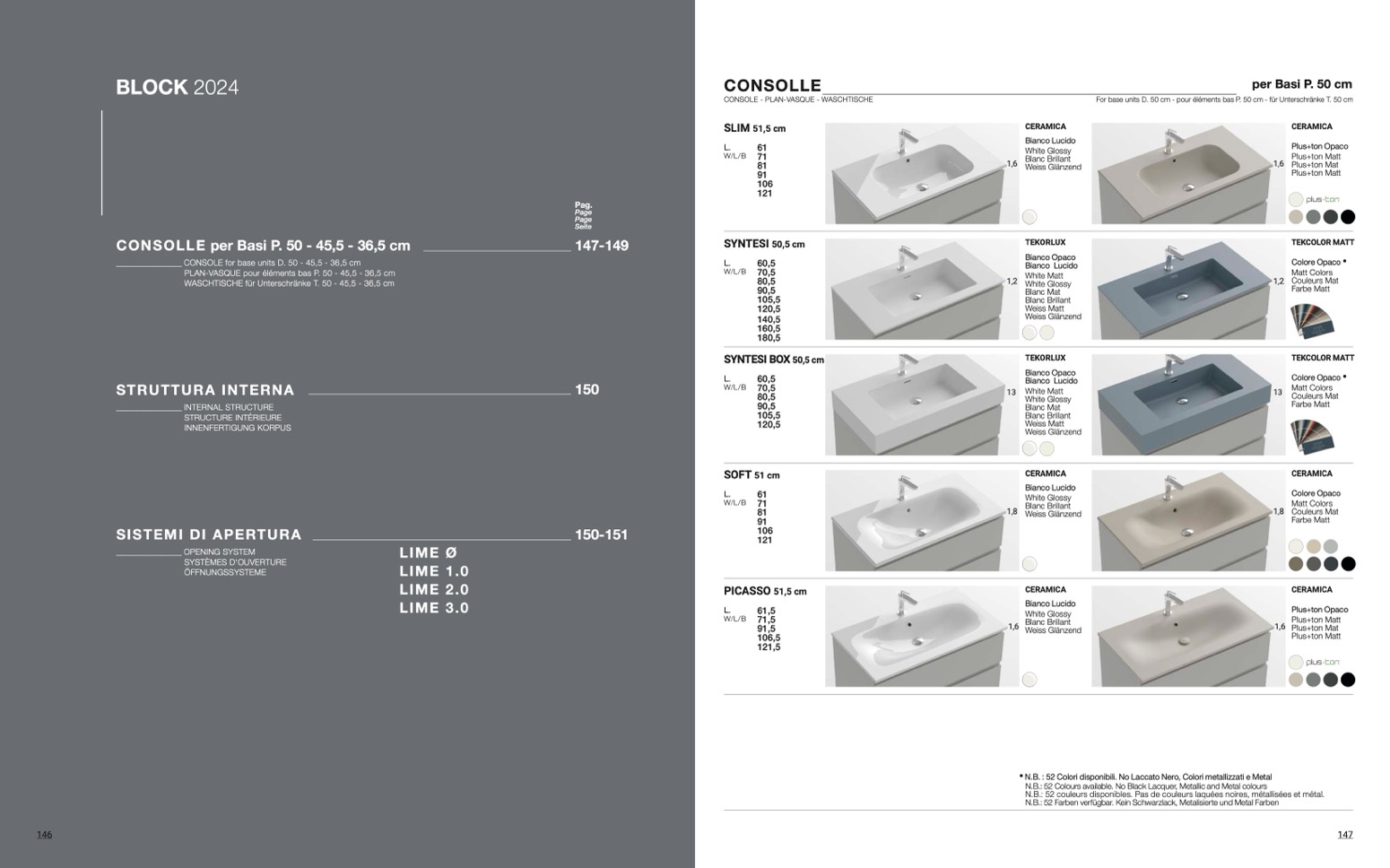 • N.B. : 52 Colori disponibili. No Laccato Nero, Colori metallizzati e Metal