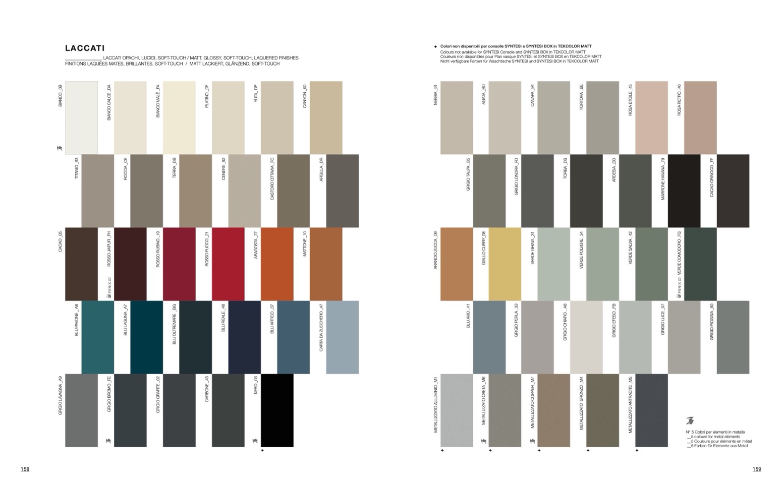 ügbare Farben für Waschtische SYNTESI und SYNTESI BOX in TEKCOLOR MATT