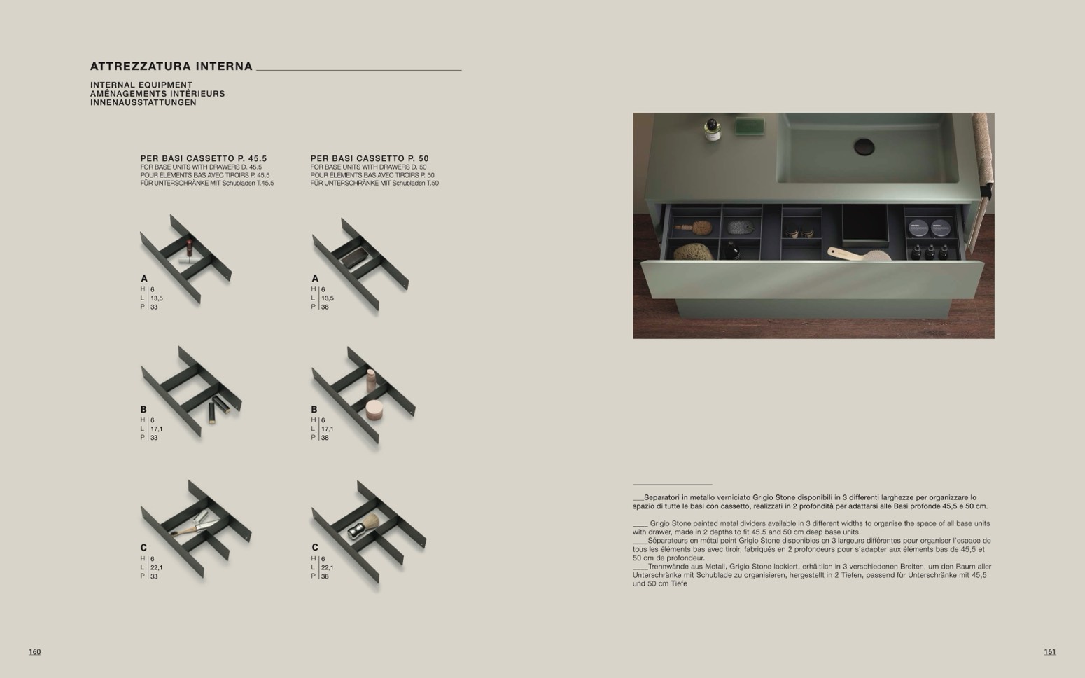 ____ Grigio Stone painted metal dividers available in 3 different widths to organise the space of all base units
