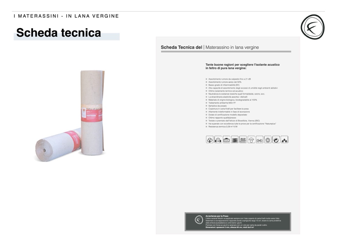 il feltro isolante Woolin va applicato sempre con il lato coperto di carta Kraft rivolto verso l’alto.