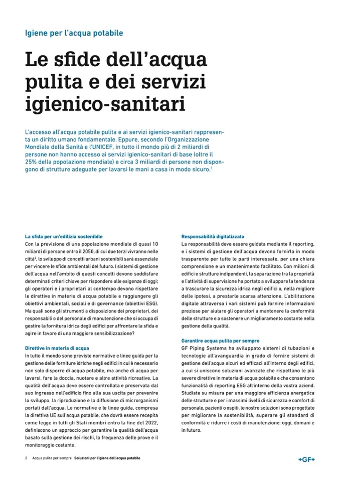 2 Acqua pulita per sempre Soluzioni per l'igiene dell'acqua potabile