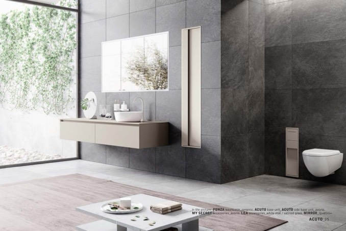 _in the picture: PONZA washbasin_ceramic. ACUTO base unit, ACUTO side base unit_avorio.