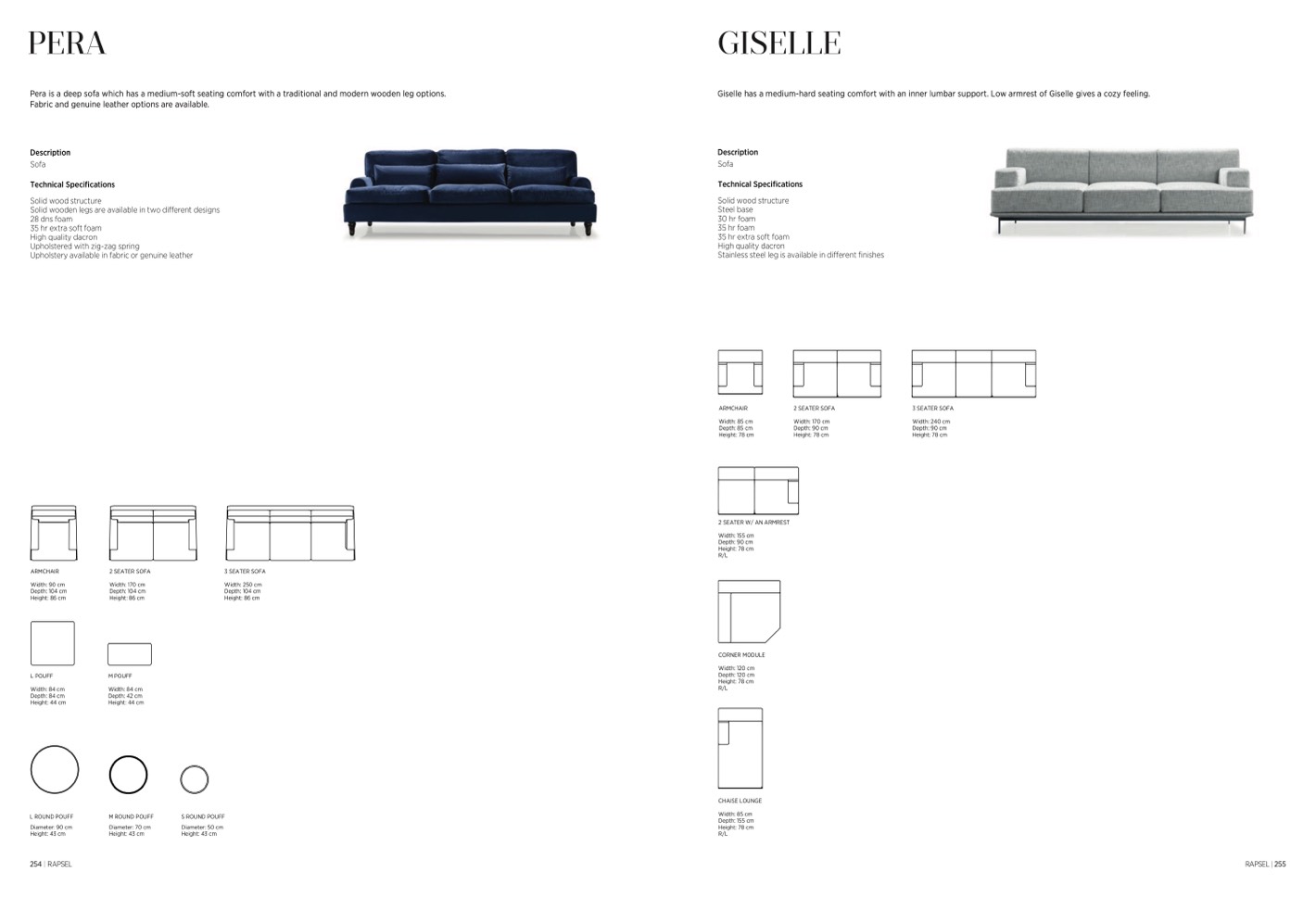 Pera is a deep sofa which has a medium-soft seating comfort with a traditional and modern wooden leg options.
