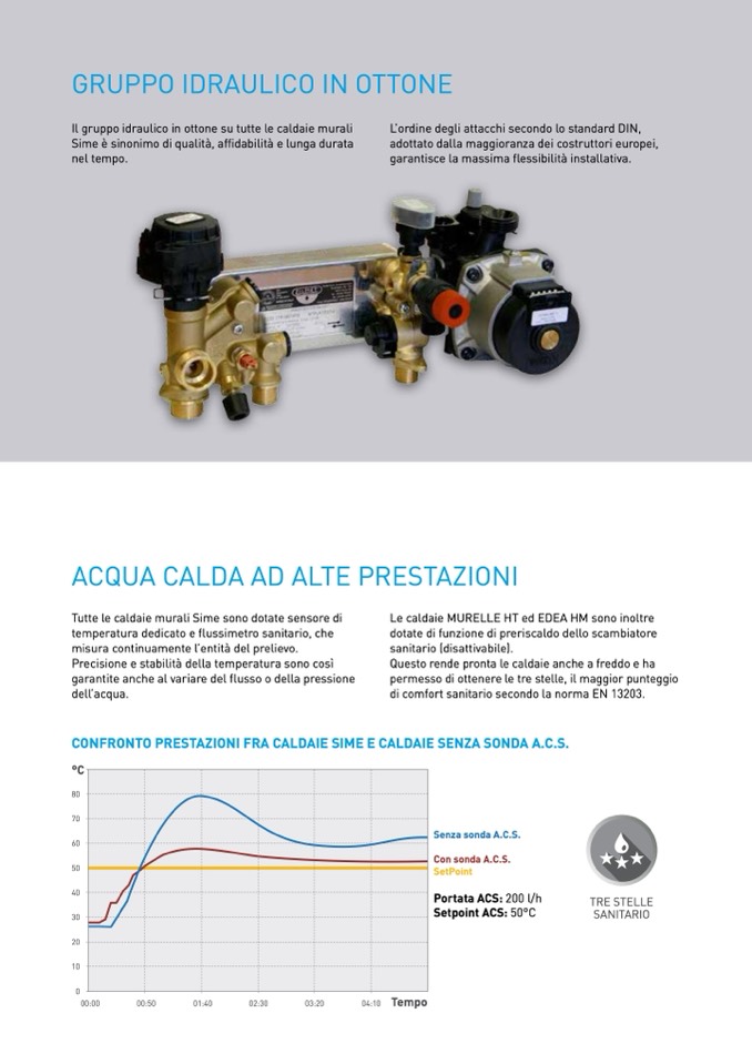 Il gruppo idraulico in ottone su tutte le caldaie murali