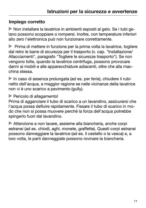 Allacciamenti", paragrafo "Togliere le sicurezze trasporto"). Se non