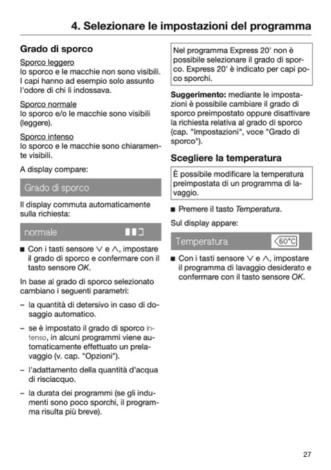 In base al grado di sporco selezionato