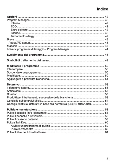 Consiglio sui detersivi Miele.................................................................................. 54