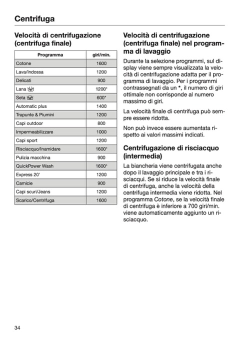 La velocità finale di centrifuga può sem-