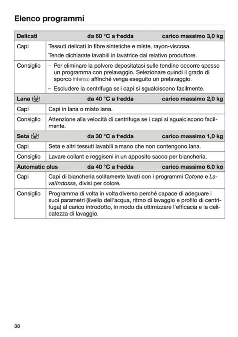 Attenzione alla velocità di centrifuga se i capi si sgualciscono facil-