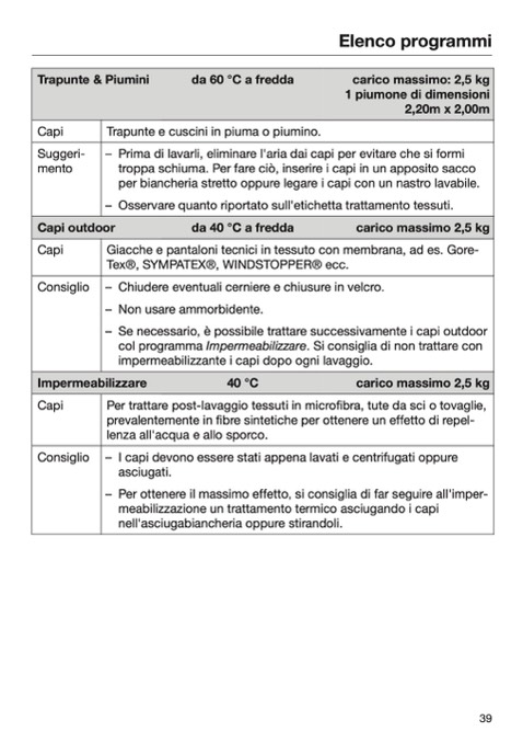 troppa schiuma. Per fare ciò, inserire i capi in un apposito sacco