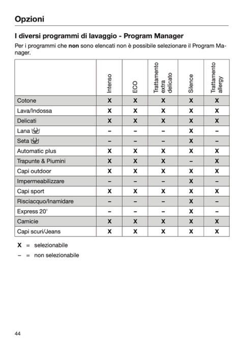 Per i programmi che non sono elencati non è possibile selezionare il Program Ma-