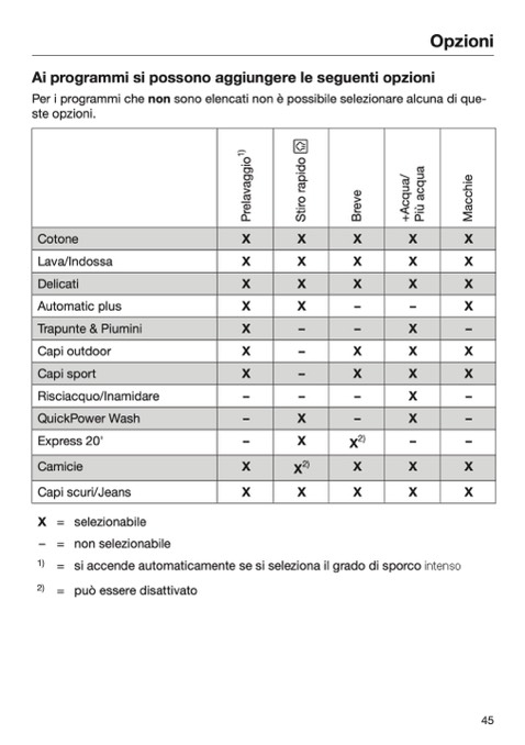 = si accende automaticamente se si seleziona il grado di sporco intenso