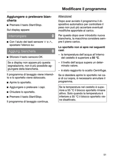riore a 55 °C il blocco sportello rimane