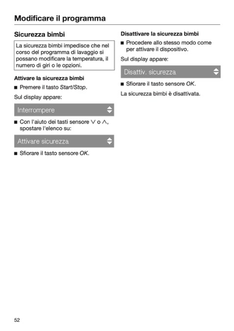 La sicurezza bimbi è disattivata.