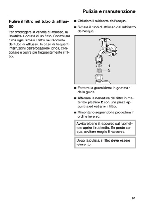 Pulire il filtro nel tubo di afflus-