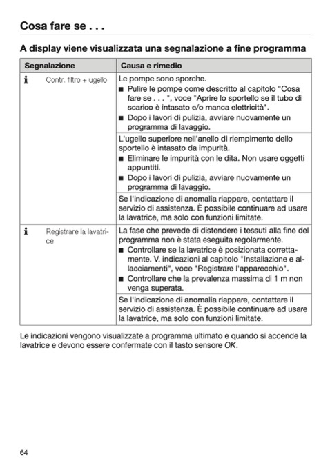 Le indicazioni vengono visualizzate a programma ultimato e quando si accende la