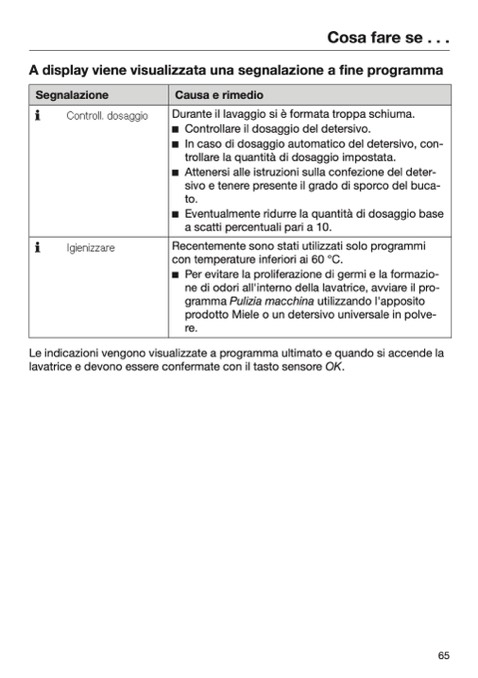 Le indicazioni vengono visualizzate a programma ultimato e quando si accende la