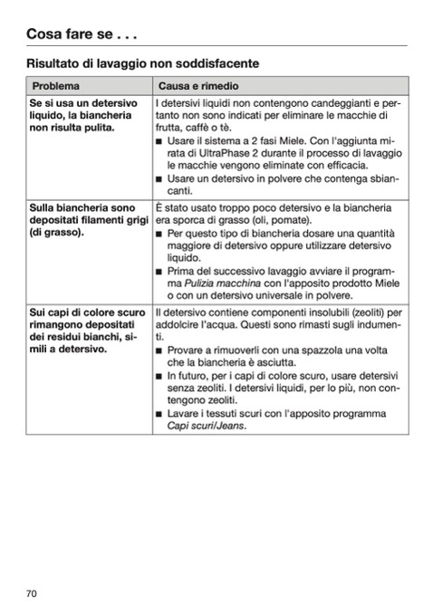 Risultato di lavaggio non soddisfacente