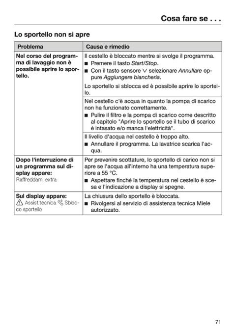 Rivolgersi al servizio di assistenza tecnica Miele