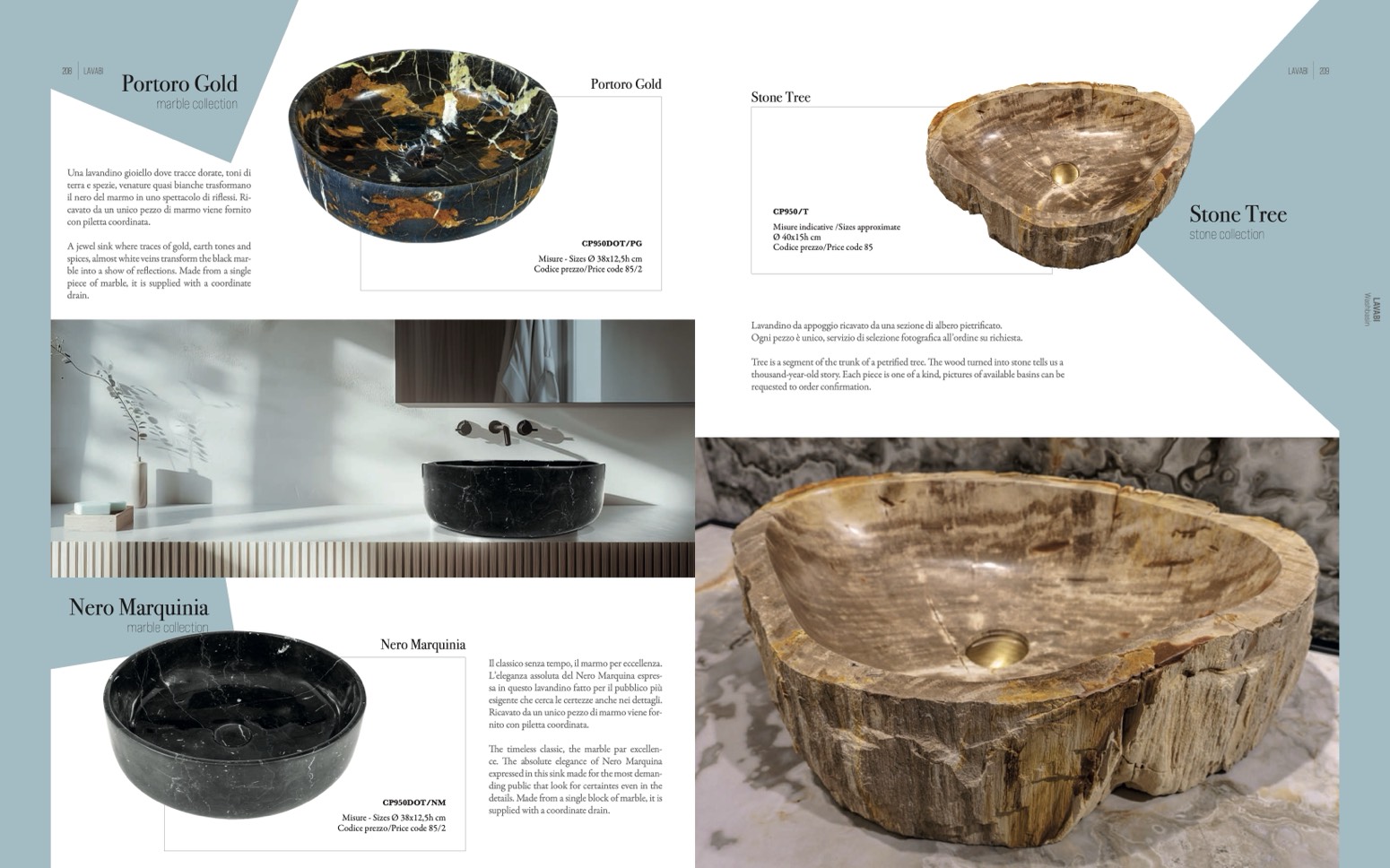 thousand-year-old story. Each piece is one of a kind, pictures of available basins can be