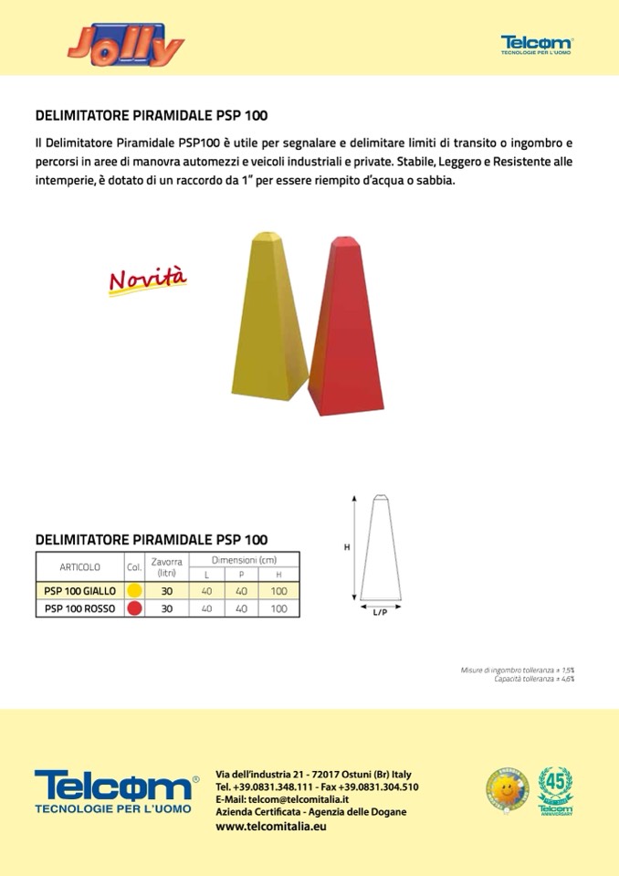 Il Delimitatore Piramidale PSP100 è utile per segnalare e delimitare limiti di transito o ingombro e