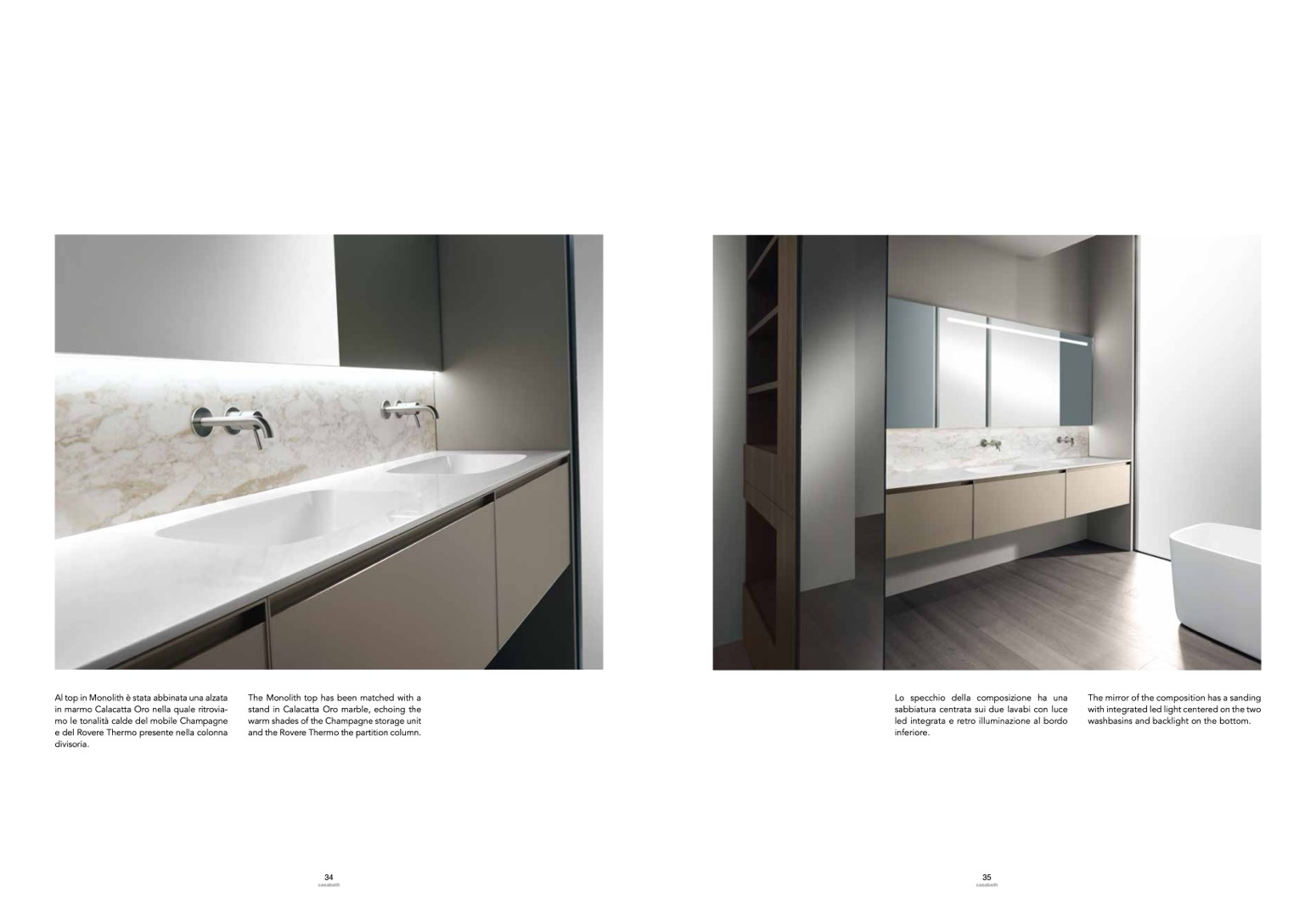 sabbiatura centrata sui due lavabi con luce