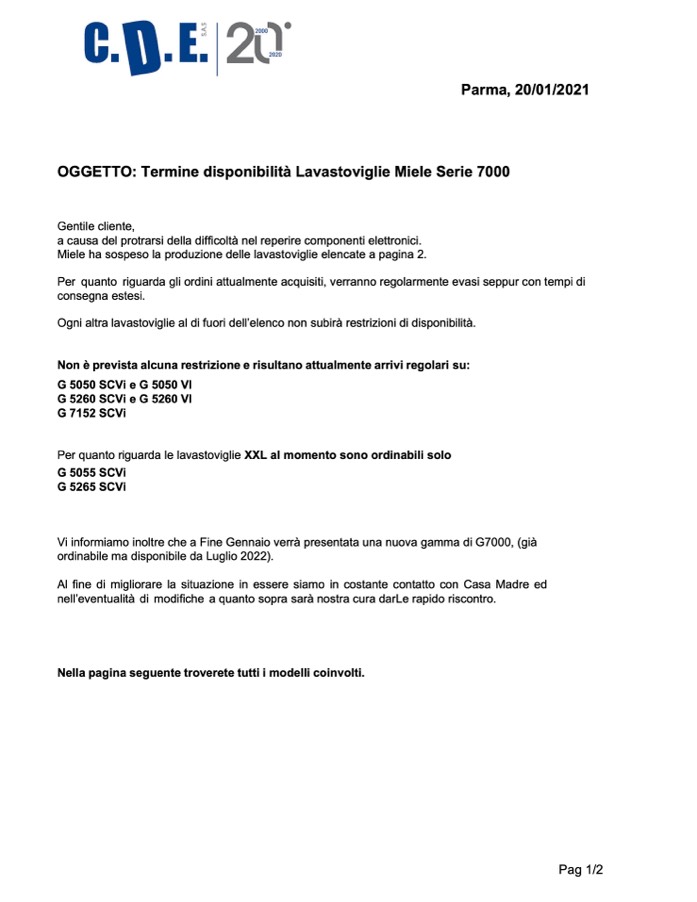 Ogni altra lavastoviglie al di fuori dell’elenco non subirà restrizioni di disponibilità.