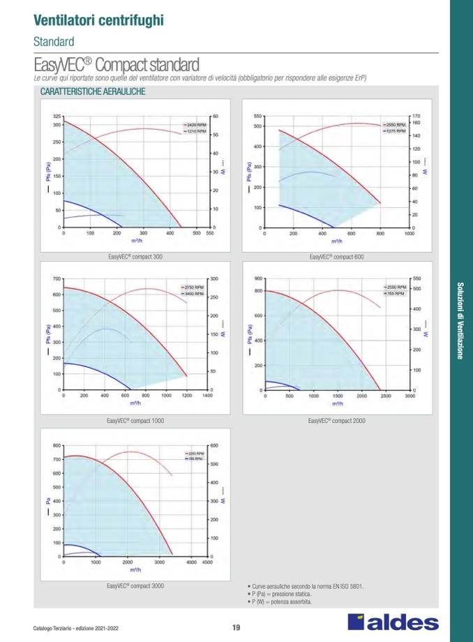 • Curve aerauliche secondo la norma EN ISO 5801.