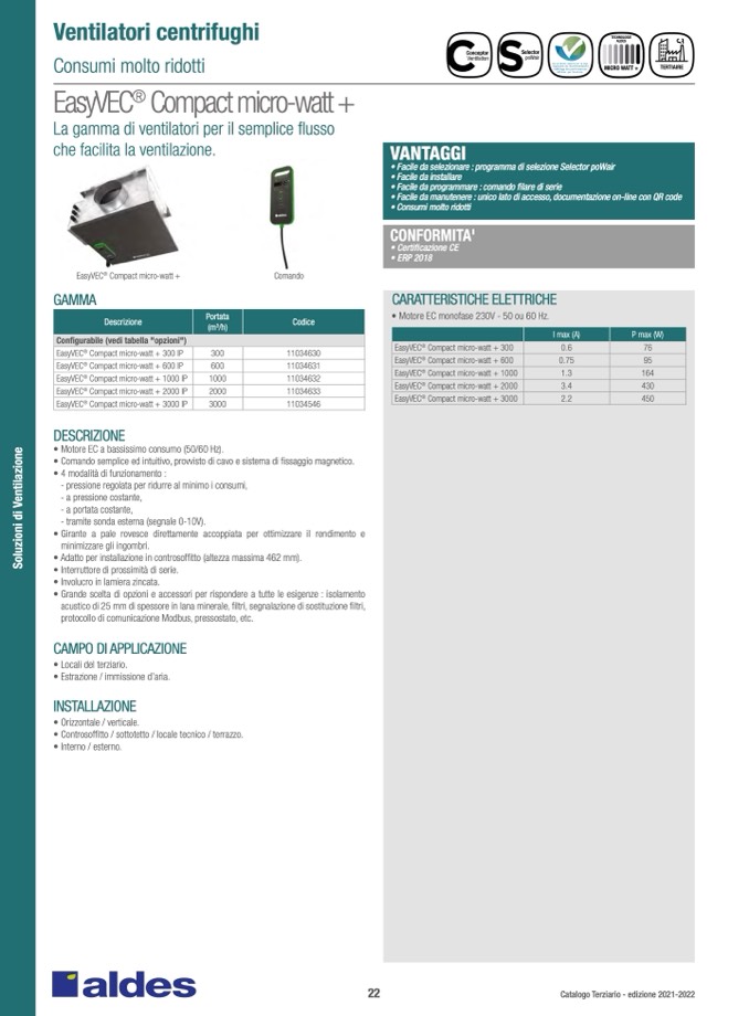 • Motore EC a bassissimo consumo (50/60 Hz).