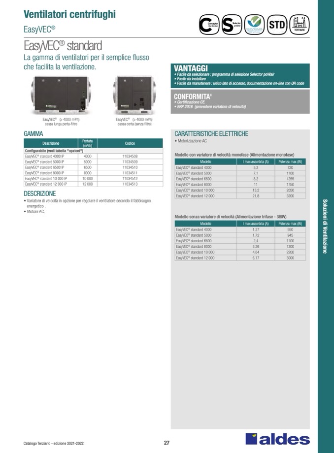 • Variatore di velocità in opzione per regolare il ventilatore secondo il fabbisogno