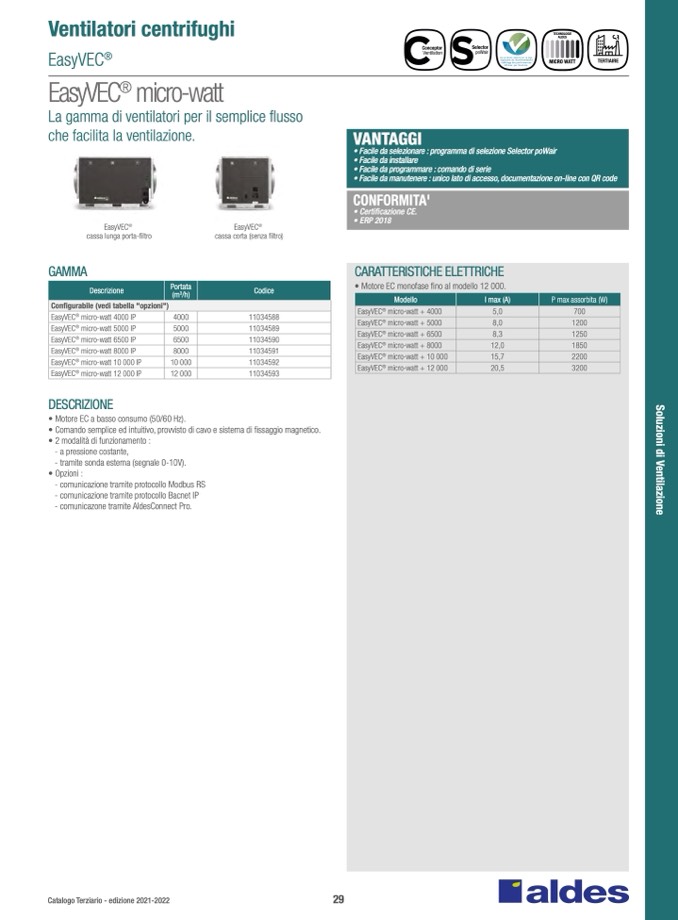 • Motore EC a basso consumo (50/60 Hz).