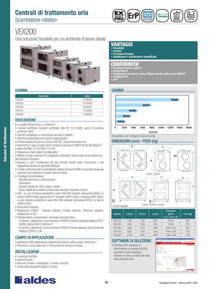 • 2 livelli di efficienza per lo scambiatore rotativo (Eurovent AARE) con sezione di spurgo