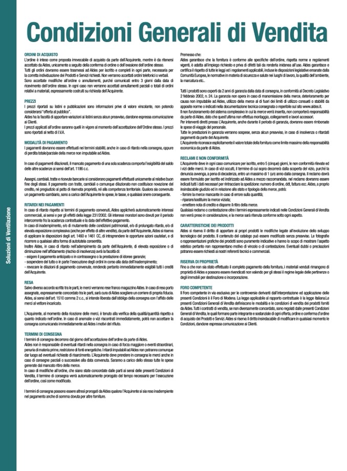 Tutti gli ordini dovranno essere trasmessi ad Aldes per iscritto e completi in ogni parte, necessaria per