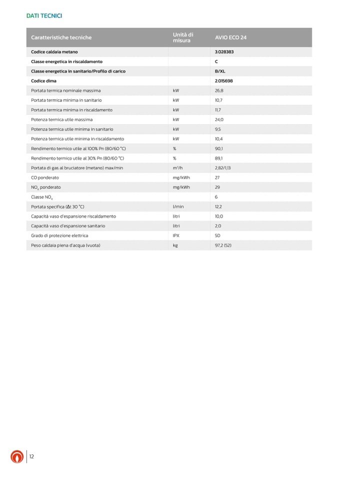 Rendimento termico utile al 100% Pn (80/60 °C)