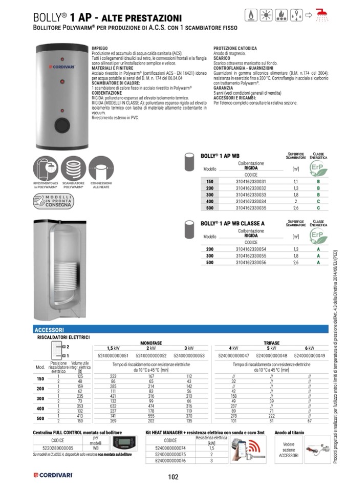 Produzione ed accumulo di acqua calda sanitaria (ACS).
