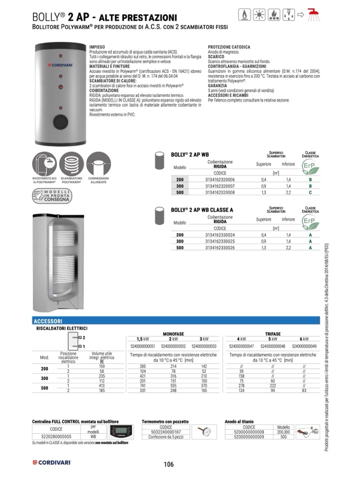 Produzione ed accumulo di acqua calda sanitaria (ACS).