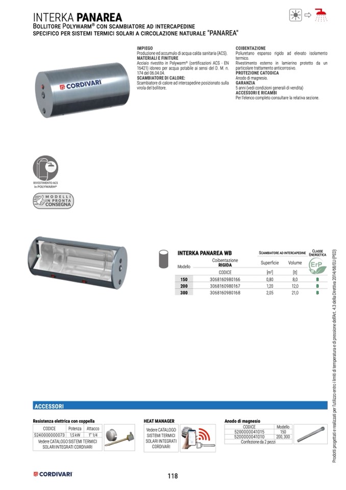 specifico per sistemi termici solari a circolazione naturale "PANAREA"
