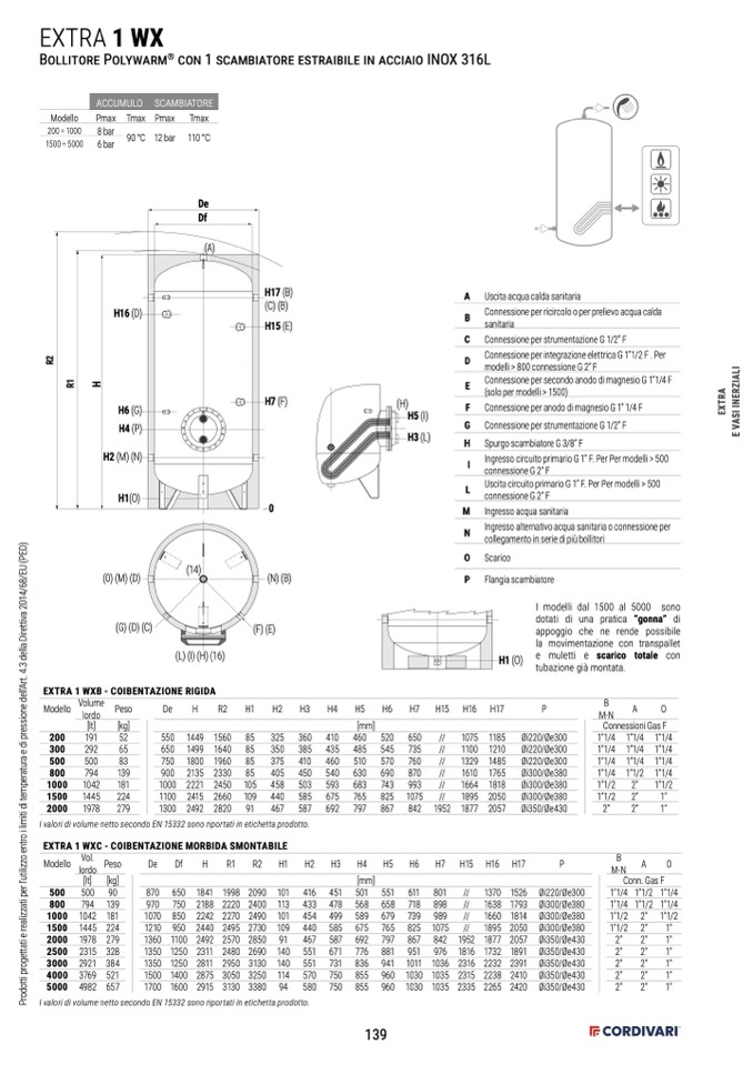 F Connessione per anodo di magnesio G 1” 1/4 F