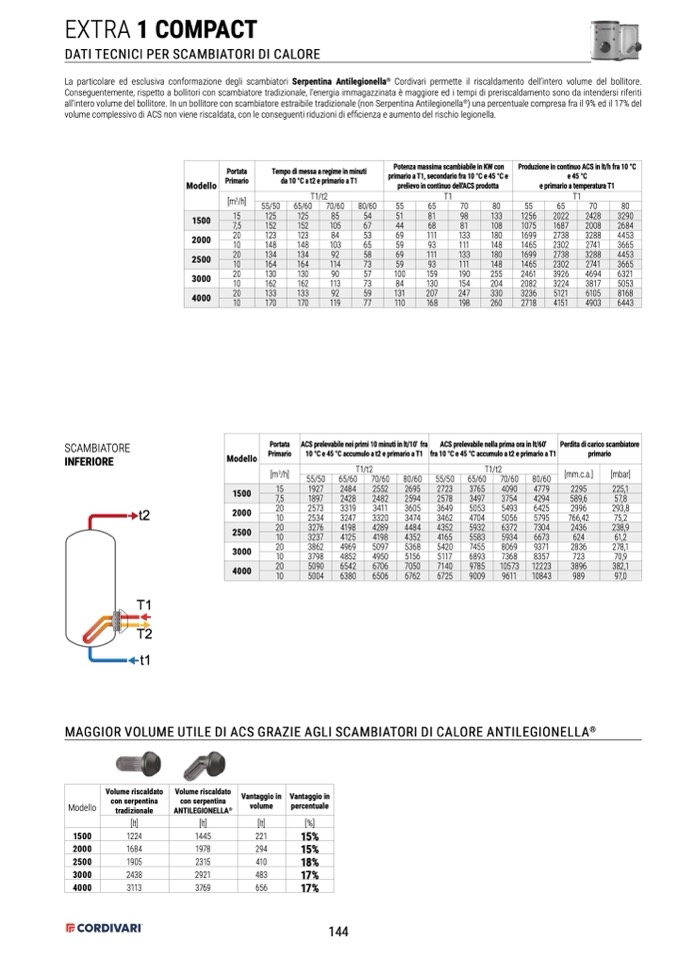 Conseguentemente, rispetto a bollitori con scambiatore tradizionale, l’energia immagazzinata è maggiore ed i tempi di preriscaldamento sono da intendersi riferiti