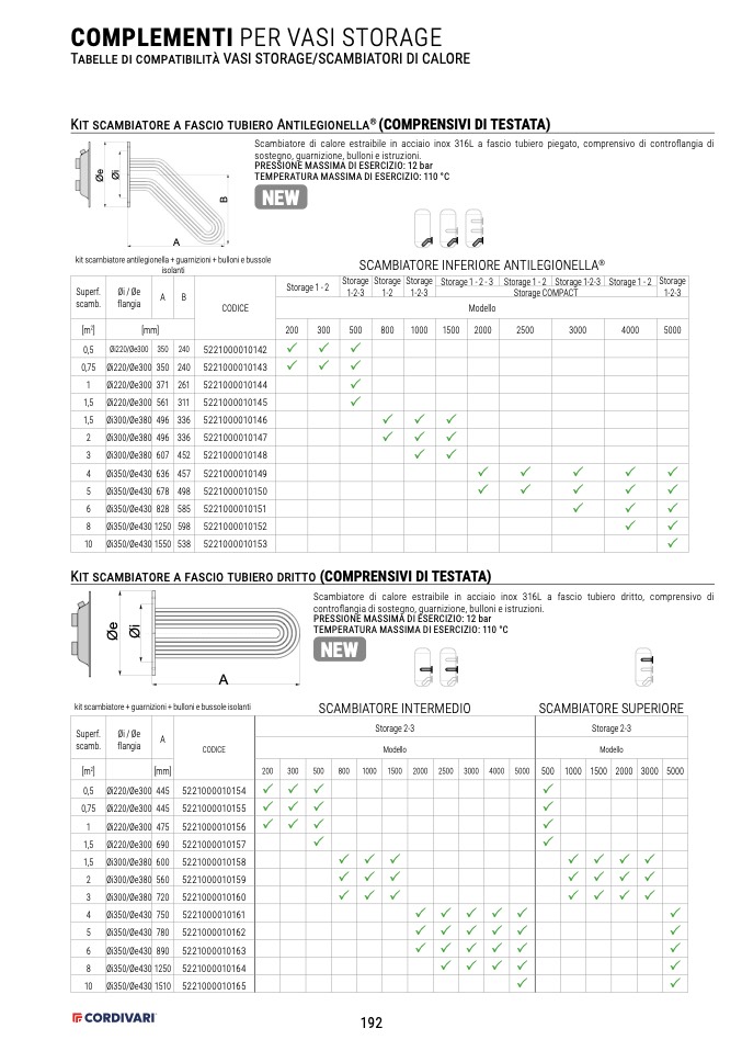Scambiatore di calore estraibile in acciaio inox 316L a fascio tubiero dritto, comprensivo di