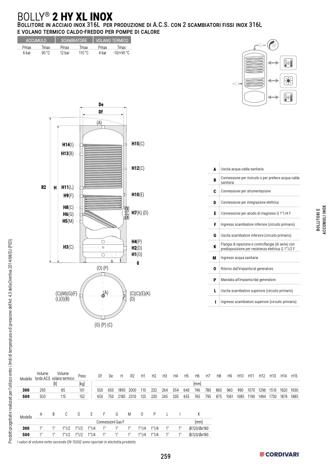 Bollitore in acciaio inox 316L per produzione di A.C.S. con 2 scambiatori fissi inox 316L