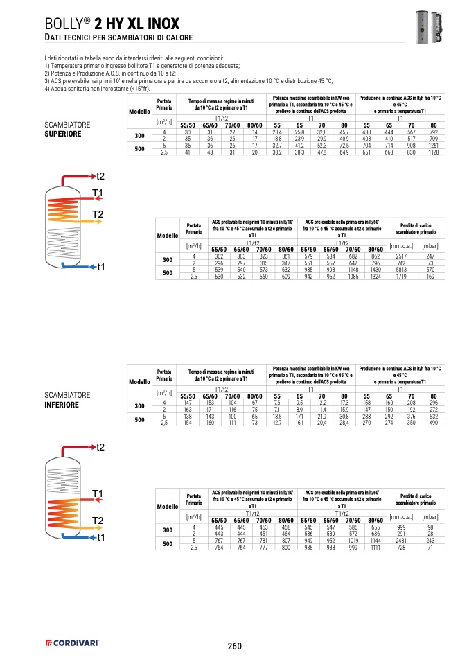 fra 10 °C e 45 °C accumulo a t2 e primario