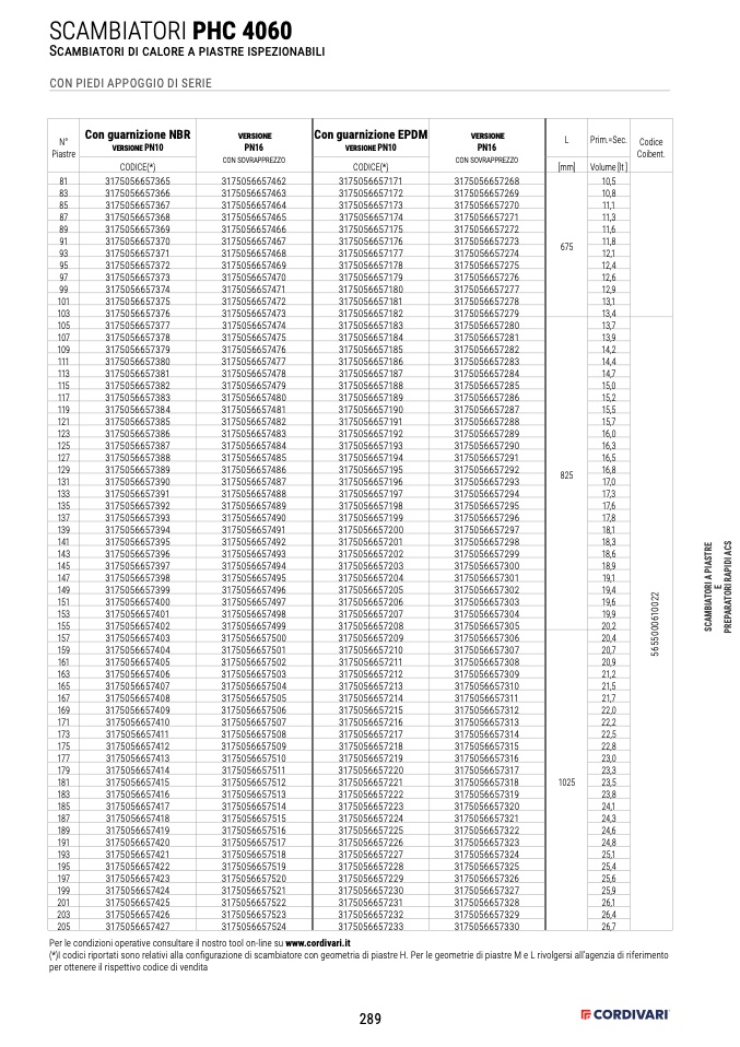 (*)I codici riportati sono relativi alla configurazione di scambiatore con geometria di piastre H. Per le geometrie di piastre M e L rivolgersi all’agenzia di riferimento