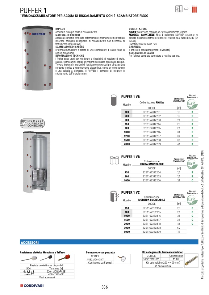 Il termoaccumulatore è dotato di uno scambiatore di calore fisso in