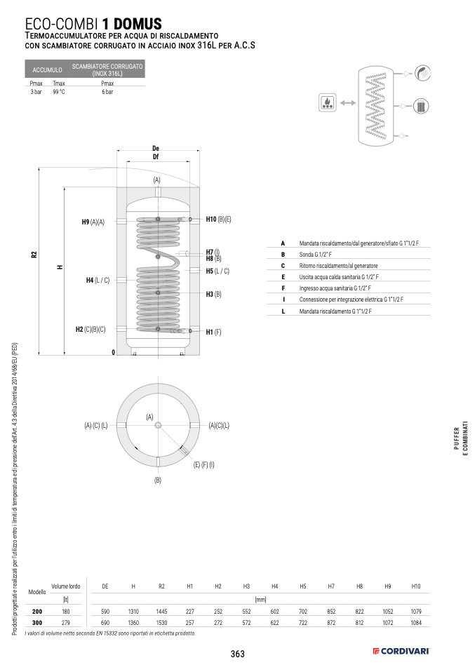 I valori di volume netto secondo EN 15332 sono riportati in etichetta prodotto.