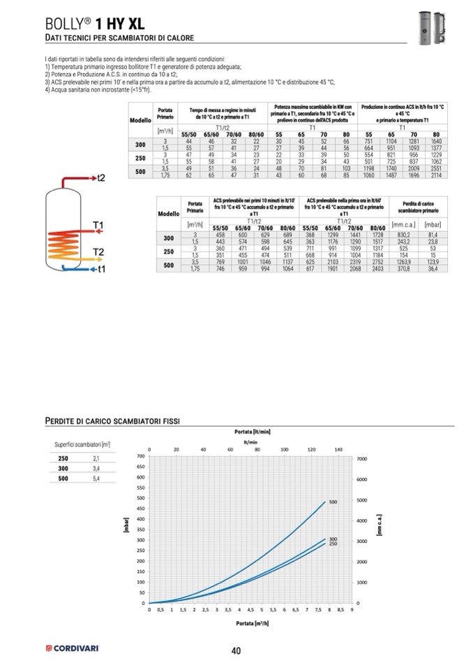 fra 10 °C e 45 °C accumulo a t2 e primario