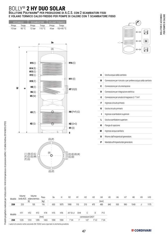B Connessione per ricircolo o per prelievo acqua calda sanitaria